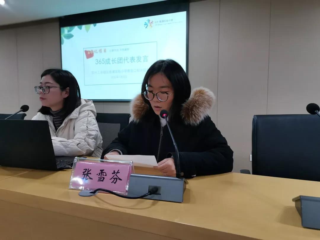 接着,由优秀青年教师代表分享成长和收获。“青年教师培训班”学员叶希婷老师结合自己工作一年半以来参加园区新教师课堂展示、园区五年内青年教师评优课比赛的经历,交流了与导师一起数次磨课的收获及思考。“365成长团”成员张雪芬老师围绕着“初心”和“感恩”两个关键词,详谈了自己一年内在“365成长团”里的磨砺和奋斗以及所取得的喜人成绩。