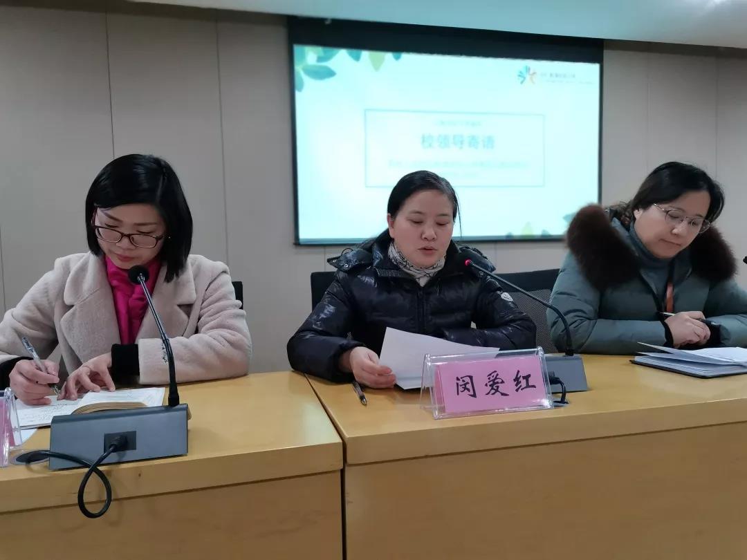 然后,闵爱红副校长作新年寄语。闵爱红勉励全体青年教师在新的一年里要虚心学教育教学技术、更要潜心学师德修养,鼓励全体导师要不断推进教学创新,做好“排头兵”,提升工作的成就感和幸福感。