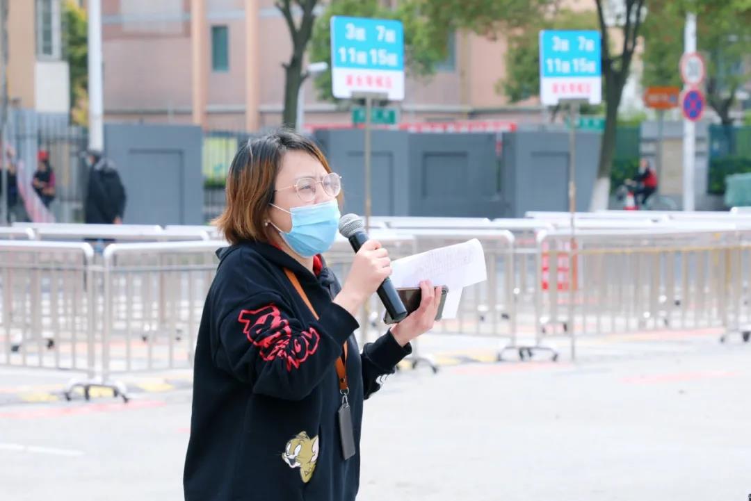 服务中心顾明珍副主任对教职工防疫包的领取以及早餐、午餐的制度做出解释说明。