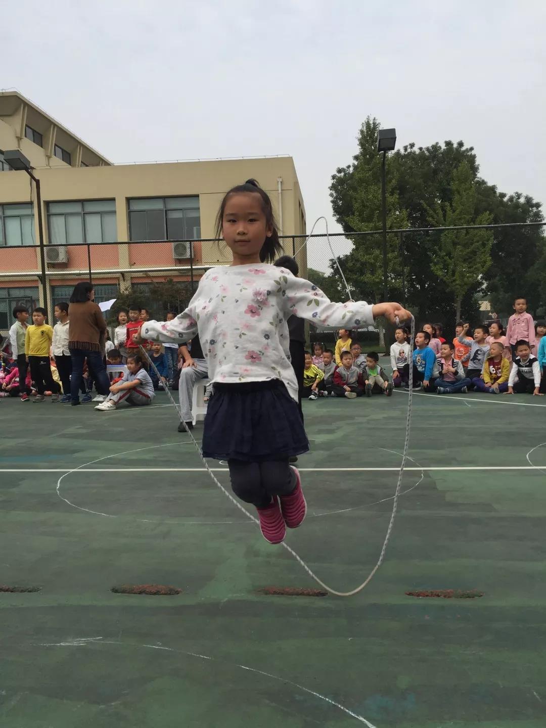首先进行的是跳绳比赛,一根根跳绳、一个个纯真的笑脸在灿烂的阳光下飞舞、绽放,你追我赶,好不热闹。