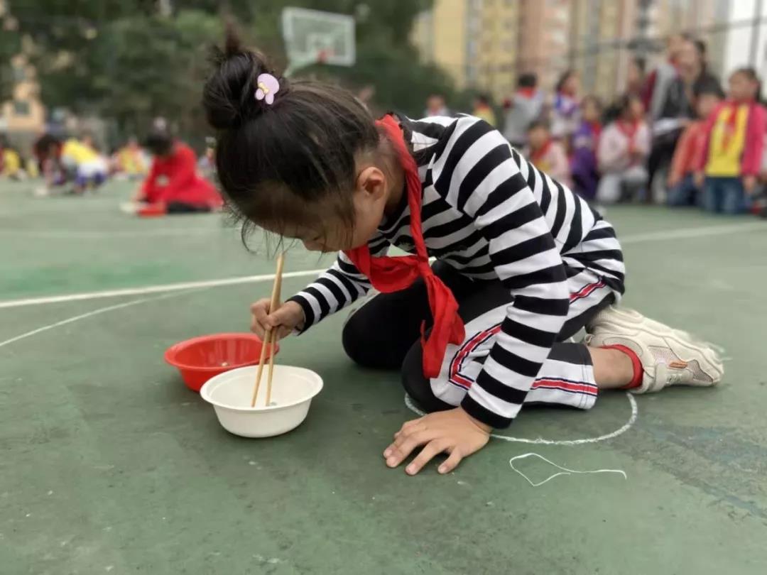 最后一项是夹弹珠比赛,看,一颗颗弹珠像被施了魔法,在一双双小手的控制下服服帖帖地从这边到另一边,运动员们个个眼神专注,认真的样子无比可爱。
