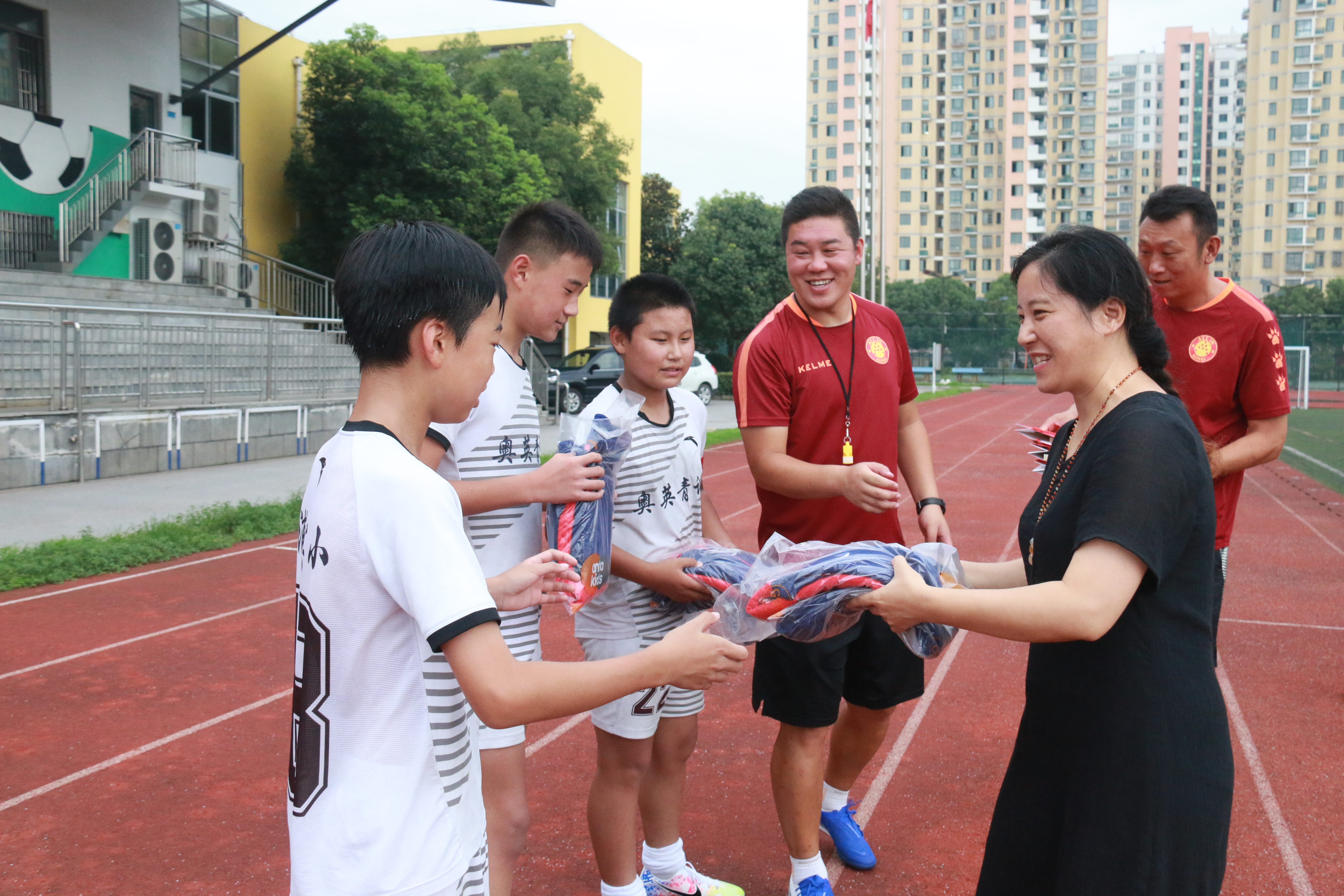 最后,计利珍校长为几位毕业的小球员颁发纪念品。她代表学校感谢了一直默默奉献的全体教练员,特别感谢了为学校取得无数荣誉的孩子们,勉励他们将这一份对足球的热爱延续下去,让足球成为自己人生长河中的伙伴,将足球精神化作激励自己的信念,在以后的学习、生活中始终全力以赴,越走越好。