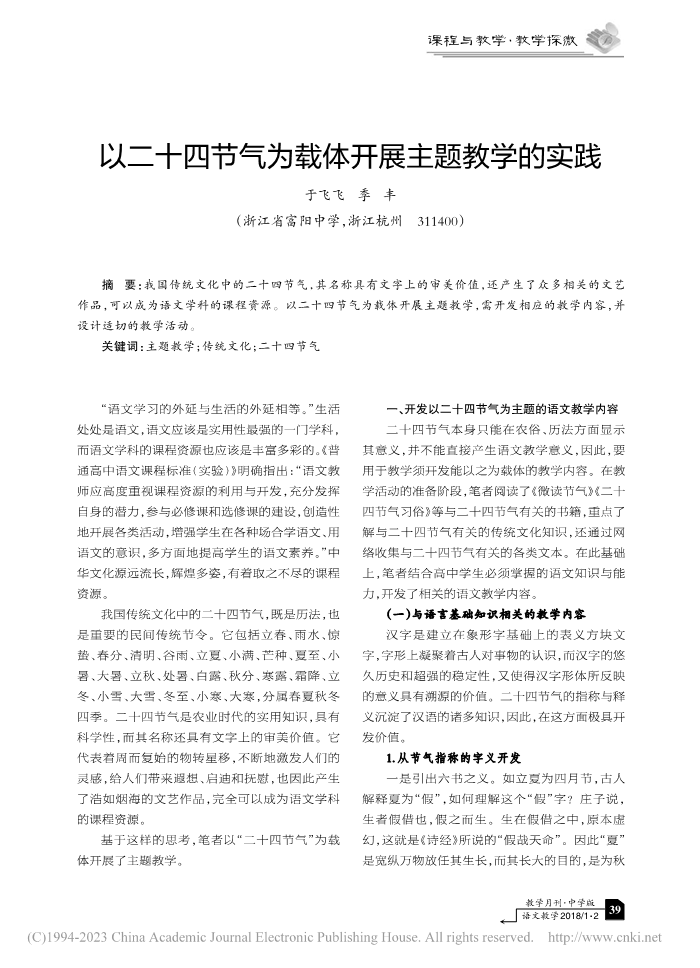 【2023年6月学习资料】以二十四节气为载体开展主题教学的实践_于飞飞